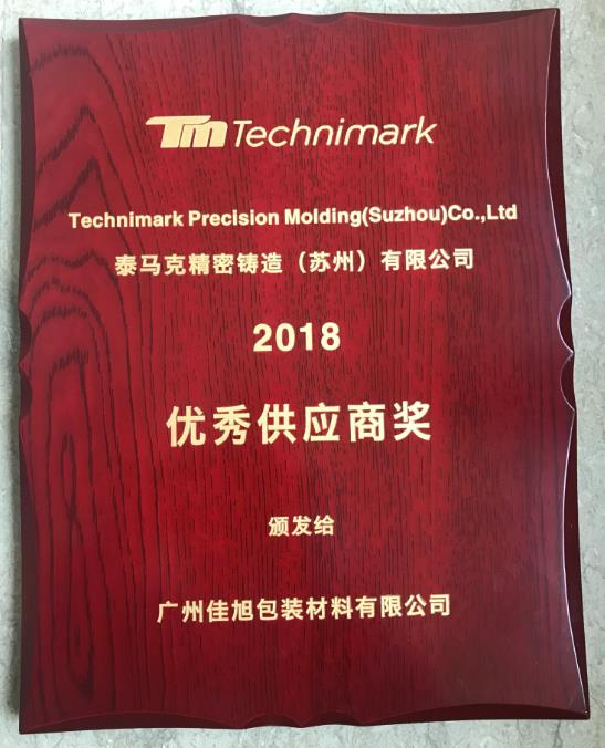 2018年11月6日,廣州佳旭榮獲客戶泰馬克精密鑄造(蘇州)有限公司2018年度優(yōu)秀供應商獎,感謝客戶的肯定! 客戶的滿意是我們前進的動力!我們將繼續(xù)堅持以人為本,以客戶及市場為中心的經(jīng)營理念,不斷提升自身競爭力,以最專業(yè)的團隊為客戶提供更多更優(yōu)質(zhì)的封口墊片及一系列封口包裝的解決方案!